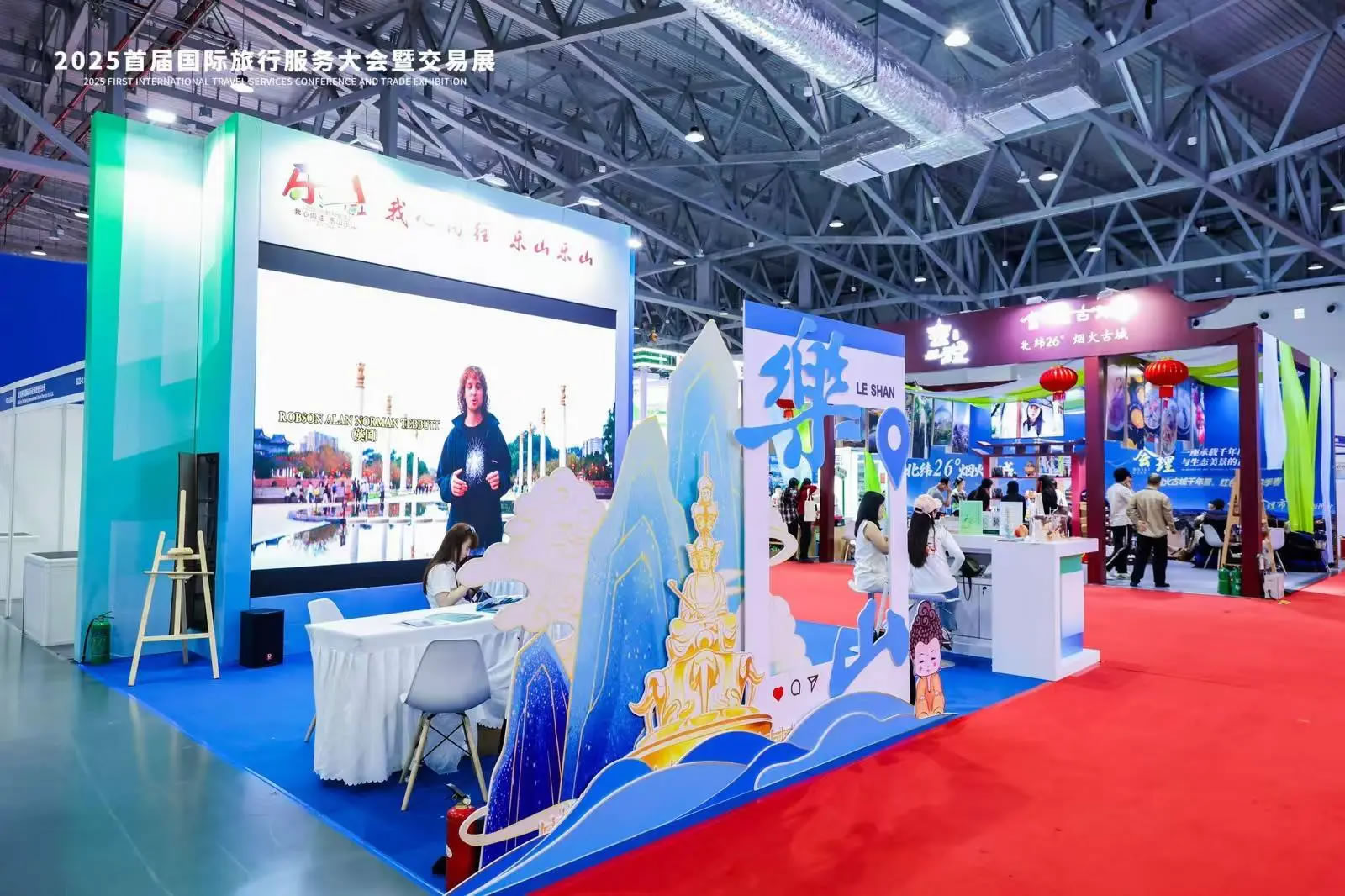 樂山主題館以文化創(chuàng)意為載體,集中呈現(xiàn)包括入境旅游、研學旅行、定制旅游、“趣學夾江”研學品牌等在內的多項旅游新業(yè)態(tài)與產品體系。主題展內,樂山大佛旅游投資開發(fā)(集團)有限公司帶來的“如樂佛”系列手辦,與峨眉山旅游股份有限公司的“峨眉記憶”文創(chuàng)產品及“峨眉雪芽”茶葉共同亮相,吸引了眾多與會嘉賓與海內外旅行商駐足觀看。樂山機場投資發(fā)展(集團)有限公司、四川峨眉山風景國際旅行社有限公司、樂山大佛風景國際旅行社有限公司也聯(lián)合參展,并發(fā)布一系列務實優(yōu)惠政策。
