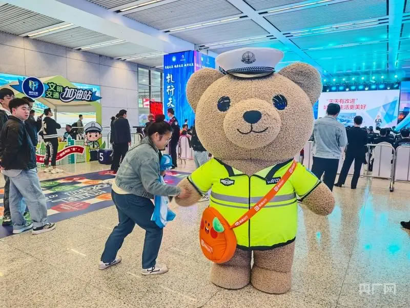 啟動(dòng)儀式后,現(xiàn)場(chǎng)設(shè)置的多個(gè)互動(dòng)體驗(yàn)區(qū)吸引了大量市民駐足參與。文明交通游戲互動(dòng)區(qū)融合了快樂(lè)大轉(zhuǎn)盤(pán)、抓娃娃機(jī)、交通標(biāo)識(shí)猜謎等趣味項(xiàng)目;交通科技體驗(yàn)區(qū)則展示了包括高科技警用設(shè)備、警用無(wú)人機(jī)、安全駕駛AR模擬、酒駕測(cè)試眼鏡在內(nèi)的先進(jìn)裝備,讓市民直觀感受科技賦能交通管理的成效。文明實(shí)踐快閃店集中呈現(xiàn)了虹橋機(jī)場(chǎng)、虹橋火車(chē)站等窗口單位在文明實(shí)踐中的創(chuàng)新成果。
