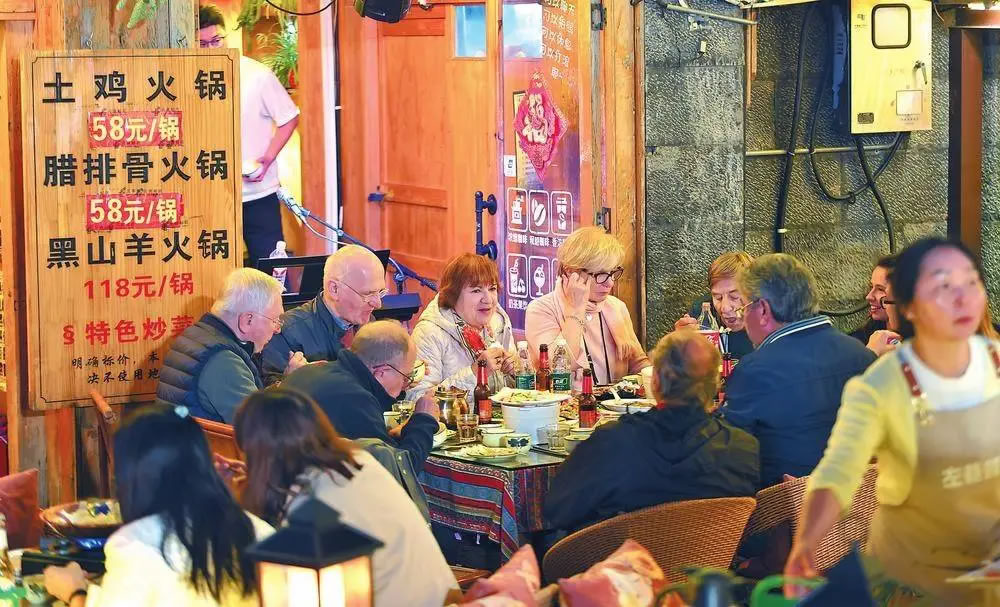 憑借優(yōu)美風(fēng)光、濃郁風(fēng)情、獨(dú)特文化體驗(yàn)和日趨完善的服務(wù),麗江吸引眾多外國(guó)游客前來體驗(yàn)“有一種叫云南的生活”。據(jù)麗江市公安局出入境管理支隊(duì)統(tǒng)計(jì)數(shù)據(jù),今年以來,全市臨時(shí)入境人員達(dá)78.97萬人次,同比增長(zhǎng)47%。圖為外國(guó)游客在麗江古城品嘗美食。(記者 陳飛)