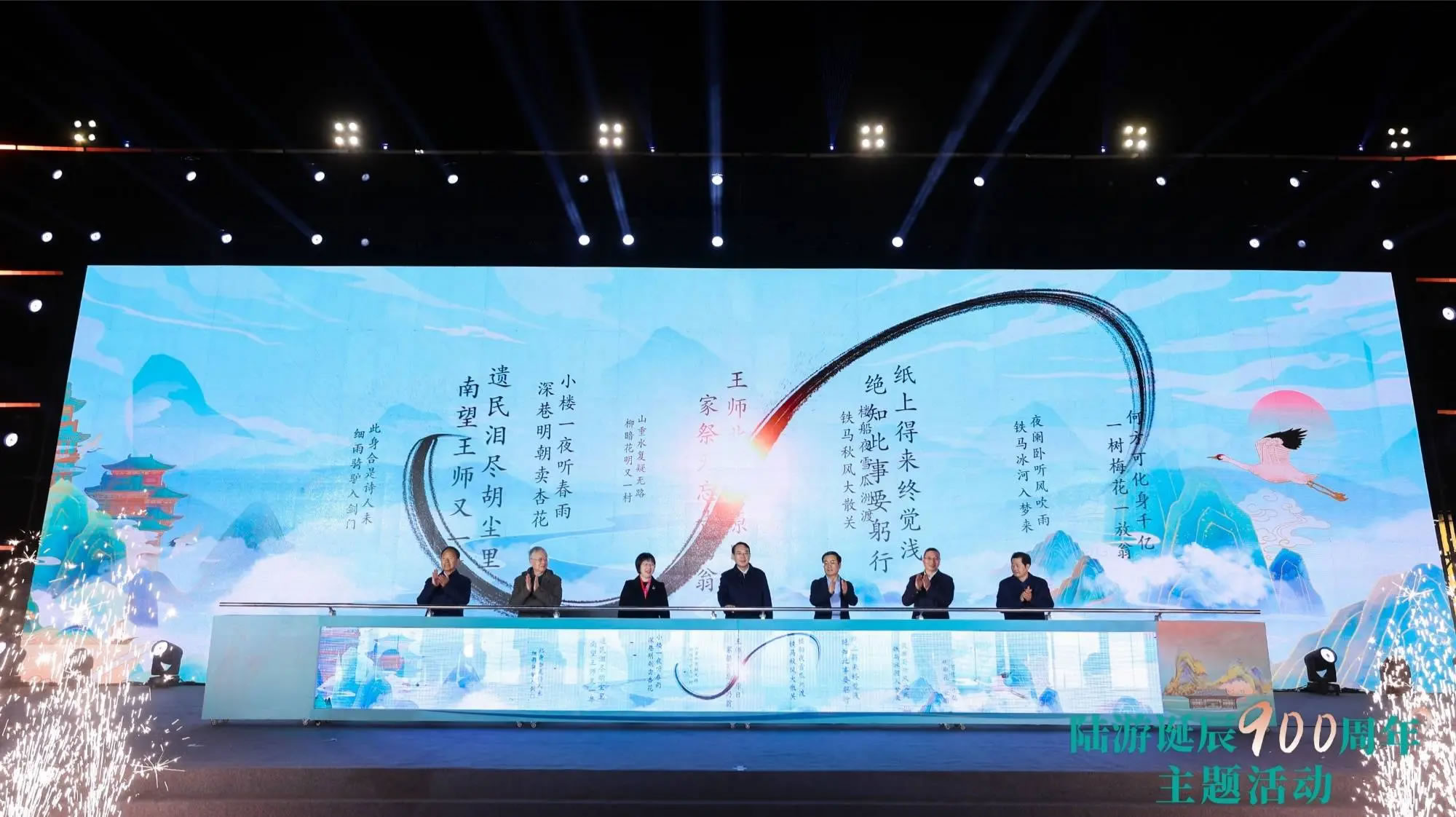 11月13日晚,陸游誕辰900周年主題活動(dòng)在紹興陸游故里景區(qū)舉辦。隨著《尋跡陸游》水上大秀的傾情上演,陸游故里開門迎客。