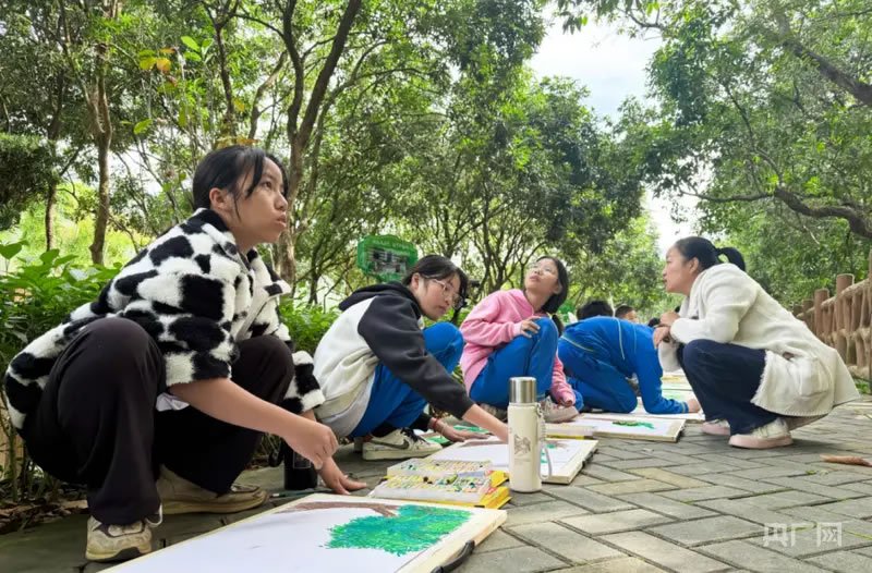 學(xué)生在肇慶龍溪棧道進(jìn)行創(chuàng)作寫生(央廣網(wǎng)記者 官文清 攝)