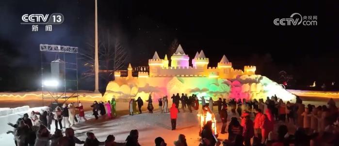 夜幕下的漠河市北極村被燈光點(diǎn)亮,惟妙惟肖的雪雕有了不一樣的顏色。在小廣場(chǎng)上,天南地北的游客聚在一起攜手起舞,并用鏡頭記錄下浪漫的煙火。為滿(mǎn)足滑雪愛(ài)好者的需求,當(dāng)?shù)匮﹫?chǎng)今年首次開(kāi)放夜滑,并新增了雪道。