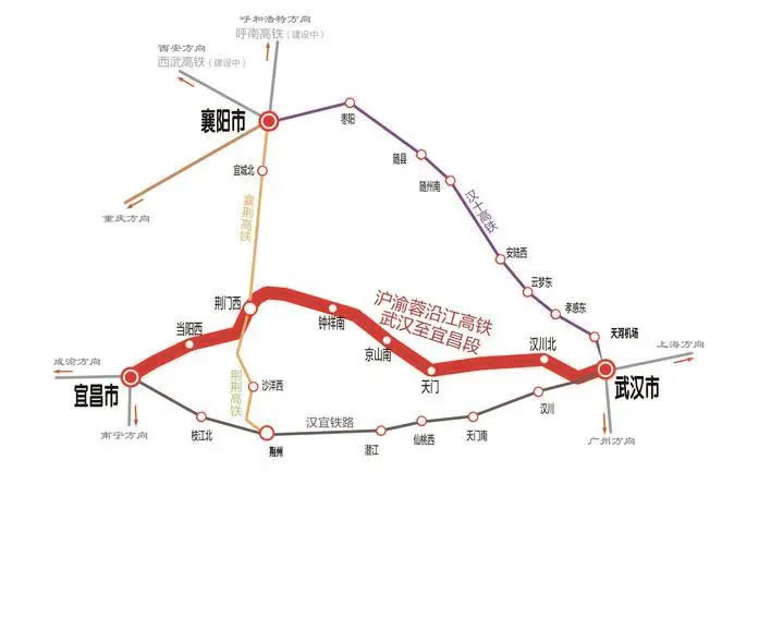 漢十高鐵武漢至襄陽(yáng)段、襄荊高鐵、滬渝蓉沿江高鐵武宜段,共同組成了漢襄宜“金三角”1小時(shí)高鐵環(huán)線。