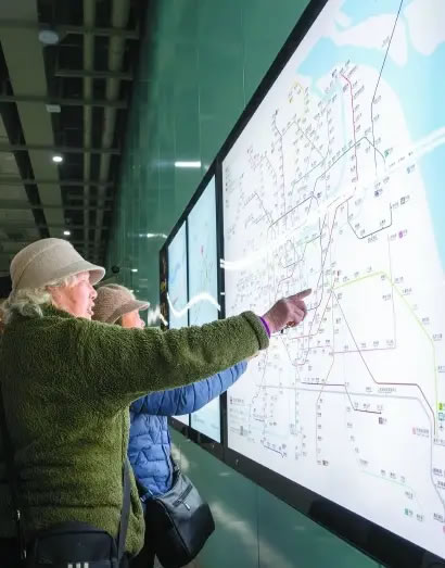 18號線二期工程開通初期運營。一早,市民在康文路站內了解上海軌交最新運營網(wǎng)線圖。記者 孟雨涵 攝
