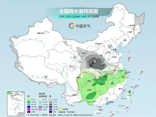 在這輪跨年雨雪過程中,甘肅東部、陜西中南部、山西南部、河南西部、湖北西北部等地為降雪核心影響區(qū)域,上述地區(qū)新增積雪深度可達(dá)2至10厘米,局地或超10厘米。正值元旦前后,福銀高速、包茂高速、連霍高速等部分路段可能出現(xiàn)積雪、結(jié)冰現(xiàn)象,公眾需警惕道路濕滑、能見度降低等對(duì)出行的不利影響,駕車外出請(qǐng)保持距離、減速慢行,注意交通安全。