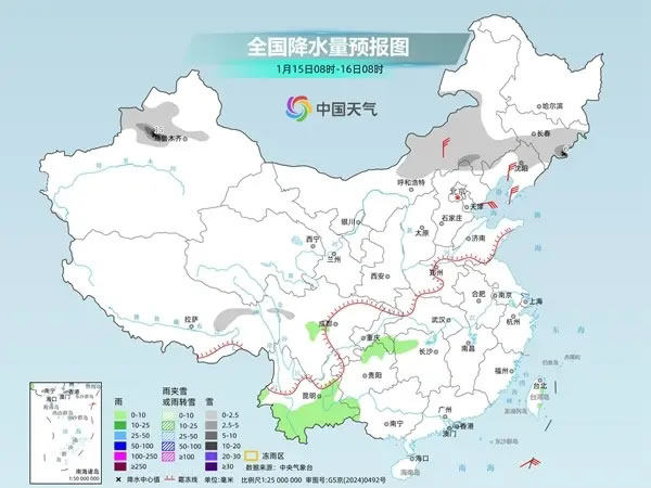 今明兩天,全國大部依然雨雪稀少,不過在新疆、內(nèi)蒙古和東北等地的部分地區(qū),冷空氣影響下有降雪天氣出沒。后天起,隨著暖濕氣流逐漸活躍,我國降水將呈現(xiàn)增多趨勢。