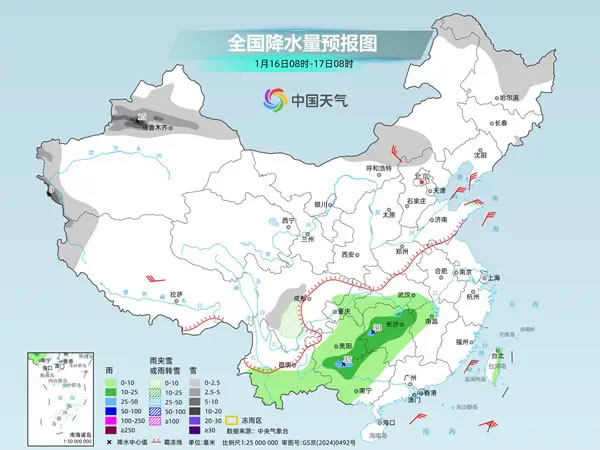 明天,新疆北部和南疆西部山區(qū)、內(nèi)蒙古中部、黑龍江中北部、川西高原北部等地部分地區(qū)有小到中雪或雨夾雪,其中,伊犁河谷山區(qū)和南疆西部山區(qū)等地部分地區(qū)有大到暴雪;湖北南部、江南中西部、重慶中部、貴州、云南中南部、廣西中西部等地部分地區(qū)有小到中雨,局地有大雨。