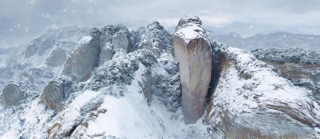 “辣椒峰”以赤紅色丹霞巨石形似倒立辣椒得名,2002年因法國(guó)“蜘蛛人”徒手攀爬而名揚(yáng)世界,其雄奇險(xiǎn)峻的地貌與晶瑩冰雪形成強(qiáng)烈視覺(jué)碰撞,成為冬日崀山的全新打卡地標(biāo)。此次全新亮相的冰雪樂(lè)園,打破傳統(tǒng)賞雪模式,將5000平方米空間打造成集觀賞、互動(dòng)、探險(xiǎn)于一體的歡樂(lè)場(chǎng):霧凇步道上,冰晶綴滿(mǎn)枝頭,與丹霞巖壁相映成趣,步步皆是童話(huà)景致;冰雪小屋內(nèi),熱飲氤氳伴雪落之聲,氛圍感拉滿(mǎn);親子嬉雪區(qū)里,堆雪人、打雪仗的歡聲笑語(yǔ),重拾純粹童真。對(duì)于追求刺激的游客,雪圈滑道俯沖而下的風(fēng)馳電掣、雪地摩托專(zhuān)屬賽道的馳騁飛躍,搭配雪橇、地形車(chē)、雪地碰碰球等十余種項(xiàng)目,全方位刷新“玩雪”想象。