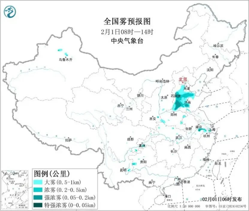 央視網(wǎng)消息:據(jù)中央氣象臺(tái)網(wǎng)站消息,2月1日早晨,河北中南部、山東西部、河南北部、安徽南部、浙江北部及新疆北部等地出現(xiàn)大霧,部分地區(qū)出現(xiàn)能見度不足500米的濃霧。