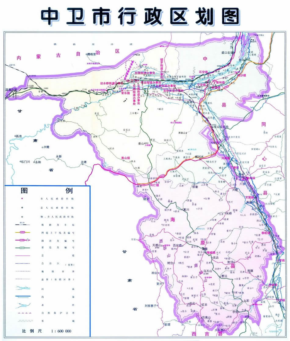 2004年,設(shè)立地級中衛(wèi)市,轄沙坡頭區(qū)(原中衛(wèi)縣)、中寧縣、海原縣。
