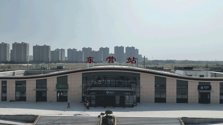 環(huán)渤海城際鐵路經(jīng)河口區(qū)、墾利,在中心城區(qū)沿西一路向南,與濟(jì)南-濱州-東營(yíng)城際軌道預(yù)留通道匯合并線,到達(dá)東營(yíng)南站,與黃大鐵路換乘,再向南經(jīng)大王轉(zhuǎn)青島方向,在西一路黃河路交叉口東北側(cè)和火車(chē)南站設(shè)有兩個(gè)城際軌道站,分別與公路客運(yùn)總站和黃大鐵路換乘。
