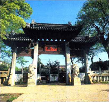 孟子對孔子有過這樣的評價(jià):“孔子之謂集大成。集大成者,金聲而玉振之也。金聲也 者,始條理也;玉振之也者,終條理也”!敖鹇暋薄ⅰ坝裾瘛北硎咀鄻返娜^程,以擊鐘(金聲)開始,以擊磐(玉振)告終。以此象征孔子思想集古圣先賢之大成,贊頌孔子對文化的巨大貢獻(xiàn)。因此,后人把孔廟門前的第一座石坊命名為“金聲玉振”。