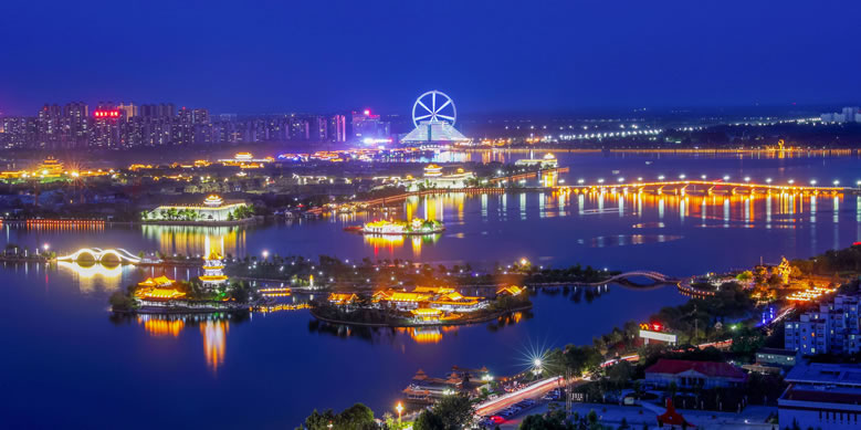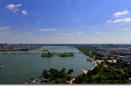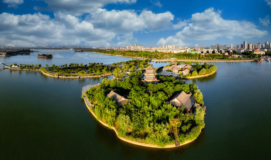 國家4A級旅游區(qū)、山東省重點(diǎn)服務(wù)業(yè)園區(qū)、山東省生態(tài)漁業(yè)示范園、國家垂釣基地,也是“江北水城·運(yùn)河古都——生態(tài)聊城”城市品牌的核心區(qū)域。位于聊城市中心城區(qū),由10個(gè)湖區(qū)和20塊水面組成,總面積6.3平方千米,湖岸線長達(dá)16千米,有“南有西子,北有東昌”之美譽(yù),是中國江北地區(qū)罕見的大型城內(nèi)湖泊。東昌湖湖始于北宋熙寧三年(1070年),水深平均達(dá)3米,最深處5米。水質(zhì)清澈,景色宜人,適宜水上游樂項(xiàng)目的開發(fā)與建設(shè)。
