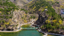 旅游北線:全程約2小時,以懸崖、棧道和唐三寨遺址為特色,主要景點有:潭溪山大瀑布、如意廣場、(乘觀光車至)三寨關(guān)、瞭望臺、八面來風、天書崖、龍脊峰、祥云橋、仙劍石敢當、三尺嶺、飛丸嵌石、劈山、3333米懸崖棧道、棧道石洞、懸空寺遺址、守寨將軍、高門洞、千米速滑道、空中玻璃漂流、兒童樂園,乘坐觀光車或沿旅游中線步行下山。