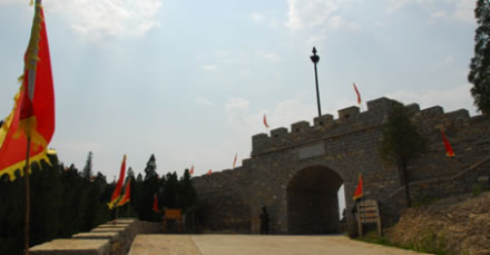 位于旅游北線,根據(jù)唐賽兒起義的資料修建的石質(zhì)城門建筑,是唐三寨古寨的西寨口,也是進入北、東、南三處山寨的重要入口,所以又叫“三寨關(guān)”。