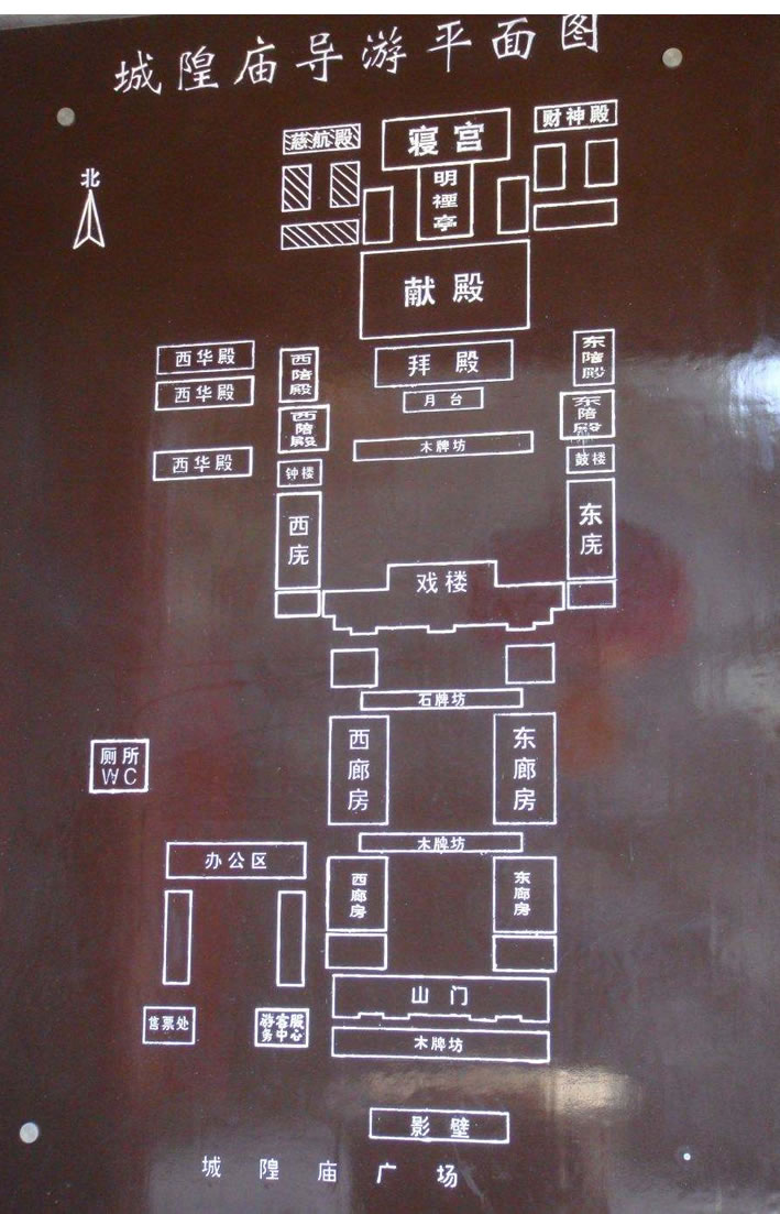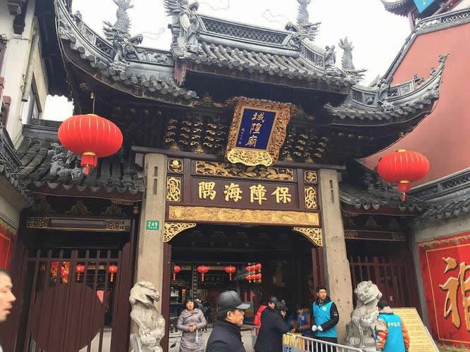 上海城隍廟,位于上海市黃浦區(qū)方浜中路249號,坐北朝向南,內(nèi)部有大門、二門、戲樓、大殿、寢宮、東西廊廡,沿中軸線依次排列,總面積約三千余平方米。廟內(nèi)主體建筑有大殿、元辰殿、父母殿、關(guān)圣殿、文昌殿等9個殿堂,總面積約三千余平方米。大殿、中殿改為鋼筋混凝土結(jié)構(gòu)。大殿高16米,寬13.7米,進深21米。歇山頂,彩椽畫棟,翠瓦朱檐,華麗輝煌。大殿前有照壁、牌坊、戲臺、碑亭。大殿祀霍光,中殿祀秦裕伯,兩側(cè)花廳奉城隍父母,后殿奉城隍夫人,樓上為寢宮。