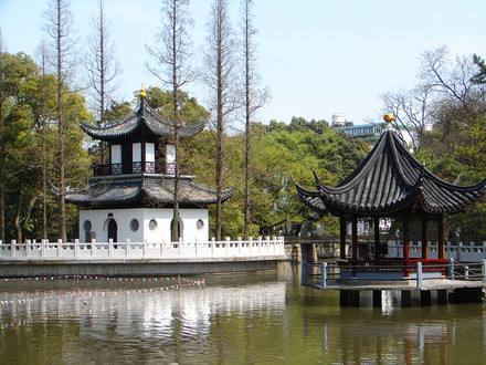 是一座具有獨(dú)特風(fēng)格的明代園林,由明代龔氏園、沈氏園、金氏園和城隍廟合并而成,為上海五大古典園林之一。秋霞圃以清水池塘為中心,石山環(huán)繞,古木參天,造園藝術(shù)獨(dú)特,分桃花潭、凝霞閣、清鏡堂、邑廟等四個(gè)景區(qū)。桃花潭景區(qū)的池上草堂,有“一堂靜對移時(shí)久,勝似西湖十里長”的贊譽(yù)。凝霞閣景區(qū)的“環(huán)翠軒”軒西有復(fù)廊式“碑廊”,上集明清碑刻17方。從西門入園,院內(nèi)森桂軒的四周遍植桂樹;軒南置明代遺物“三星石”,分別取名“福、祿、壽”;園內(nèi)還有一“涉趣橋”,建于民國十年(1921年),連接曲徑北岸,橫跨幽泉清溪。