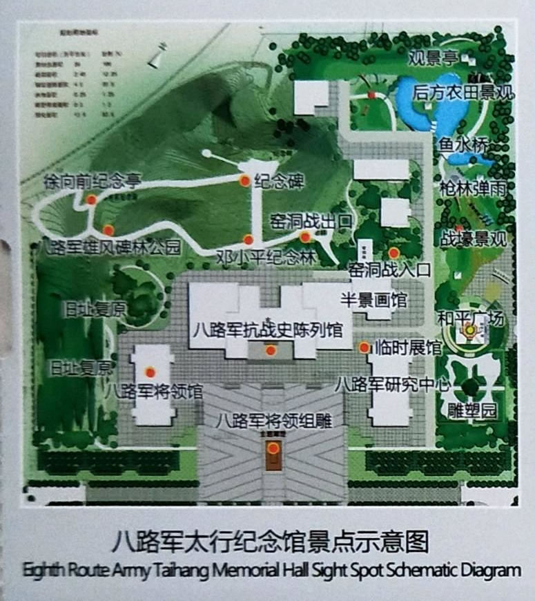 主要場館為八路軍抗戰(zhàn)史陳列館,與八路軍將領組雕、八路豐碑遙相呼應,呈“一”字型分布。背倚鳳凰山、東眺馬牧河,坐北朝南。陳列館由序廳、六大陳列廳、休息廳、抗戰(zhàn)文化墻等構(gòu)成。從空中俯瞰,為“工”字型布局,兩側(cè)是平頂現(xiàn)代建筑,中堂尖頂為傳統(tǒng)建筑。于2005年正式對外開放,一座全面反映八路軍八年抗戰(zhàn)光輝歷史的大型軍事專題場館。