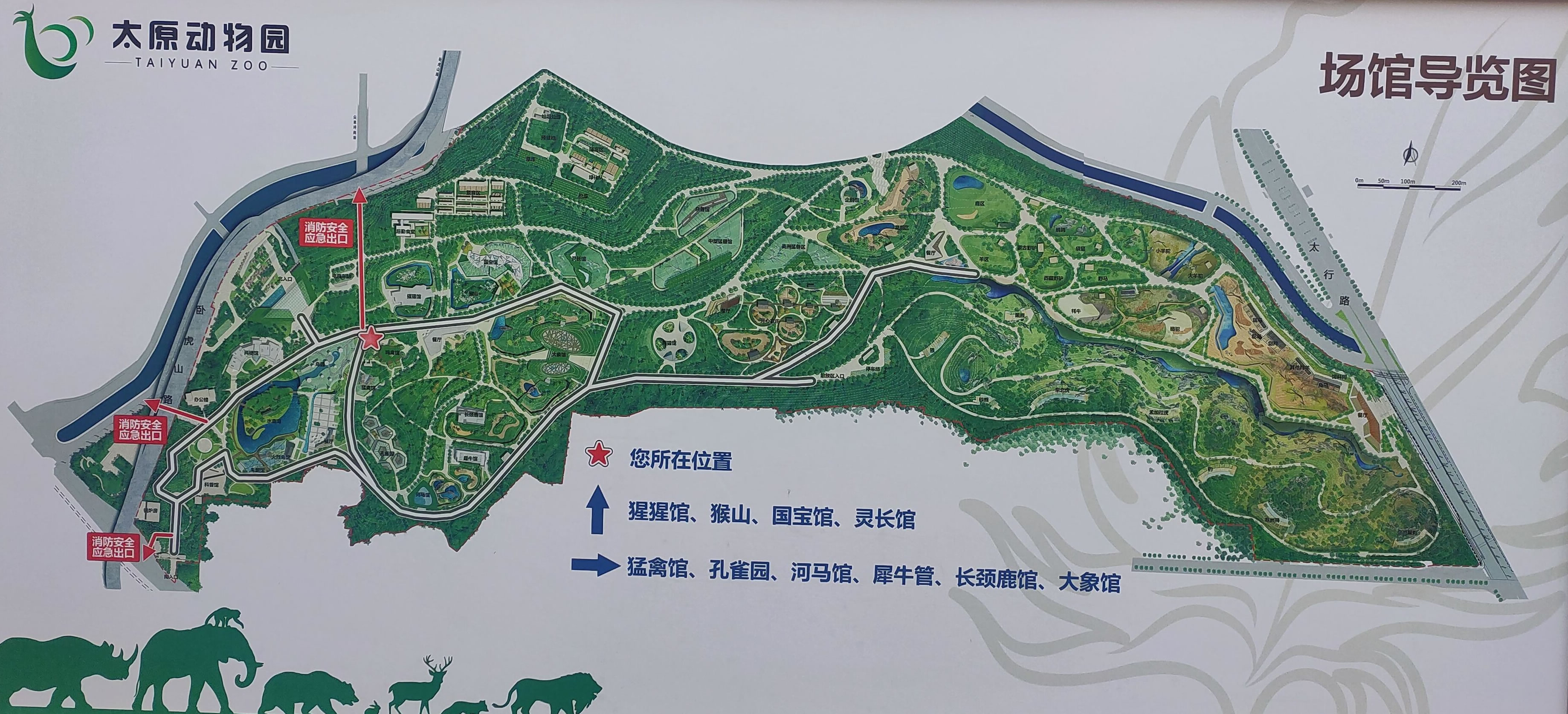 太原動物園現(xiàn)占地面積為42公頃,飼養(yǎng)展出動物 150余種,近2000只,場館建筑面積達兩萬多平方米,每年接待國內(nèi)外游客 200多萬人次。 在展覽內(nèi)容上,有進口動物長頸鹿、白犀、斑馬、長角羚、美洲獅、狒狒等,國產(chǎn)動物大熊貓、亞洲象、扭角羚、東北虎、金錢豹、蒙古野驢、白唇鹿、麋鹿、褐馬雞、綠孔雀等。 太原動物園,北部為猛獸室;中部為鳥館、水禽;南部為猴舍、熊貓、海豹館,褐馬雞,珍珠雞、羚羊、梅花鹿也雜居其間。