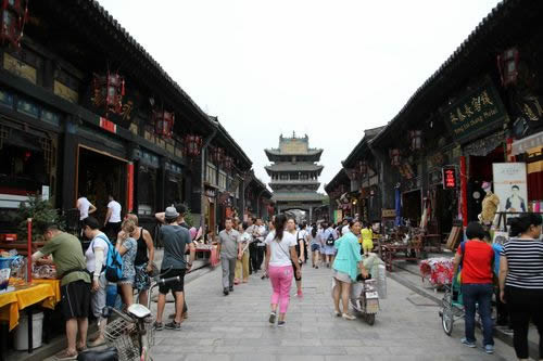 平遙古城以南大街為主軸線,以街心的市樓為至高點(diǎn),城隍、衙署擇高處而立,一東一西,對(duì)稱分布,表達(dá)了封建統(tǒng)治者“人神共治”的愿望。大型的宗教建筑設(shè)置在城市交通干道的兩端。全城四大街、八小街、七十二條小巷道,經(jīng)緯交織,主次分明 。市井商鋪林立,店面相連。古民居鱗次櫛比,院落重重,宅院(包括商鋪)建筑中軸強(qiáng)烈,對(duì)稱嚴(yán)謹(jǐn),從房舍的配置上體現(xiàn)出長(zhǎng)幼有序、尊卑有別的封建倫理觀念。