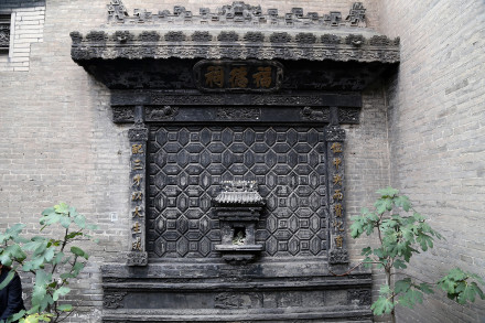 喬家大院大門(mén)坐西向東,為拱形門(mén)洞,上有高大的頂樓,頂樓正中懸掛著山西巡撫受慈禧太后面喻而贈(zèng)送的匾額,上書(shū)“福種瑯環(huán)”四個(gè)大字。黑漆大門(mén)扇上裝有一對(duì)椒圖獸街大銅環(huán),并鑲嵌著銅底板對(duì)聯(lián)一付:“子孫賢,族將大;兄弟睦,家之肥。”字里行間透露著喬在中堂主人的希望和追求,也許正是遵循這樣的治家之道,喬在中堂經(jīng)過(guò)連續(xù)幾代人的努力,達(dá)到了后來(lái)人丁興旺、家資萬(wàn)貫的輝煌。大門(mén)頂端正中嵌青石一塊,上書(shū)“古風(fēng)”。大門(mén)對(duì)面的掩壁上,刻有磚雕“百壽圖”,一字一個(gè)樣,字字有風(fēng)采。百壽圖為“在中堂”主人喬致庸的孫婿、近代著名學(xué)者、篆書(shū)家常贊春書(shū)寫(xiě)。掩壁兩旁是清朝大臣左宗棠題贈(zèng)的一付意味深長(zhǎng)的篆體楹聯(lián):“損人欲以復(fù)天理,蓄道德而能文章。”楹額是“履和”。甬道的西盡頭處是雕龍畫(huà)棟的喬氏祠堂,與大門(mén)遙相對(duì)應(yīng)。祠堂裝點(diǎn)得十分講究,三級(jí)臺(tái)階,廟宇結(jié)構(gòu),以獅子頭柱,漢白玉石雕,壽字扶欄,通天欞門(mén)木雕夾扇。出檐以四條柱子承頂,柱頭有玉樹(shù)交榮、蘭馨桂馥、藤羅繞松的鏤空木雕。額頭有匾,上書(shū)“仁周義溥”四字,李鴻章所題。祠堂里原陳列著木刻精雕的三層祖先牌位。