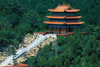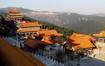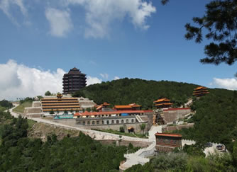 烏金山不僅有豐富的自然景致,而且還有數(shù)不盡的人文景觀。由于烏金山山高林密,氣候宜人,風(fēng)景秀美,靜謐清幽,歷朝歷代多有僧侶入山修行,更有文人墨客、達(dá)官顯貴前來觀瞻,因此便留下了許多人文遺跡。這里是佛教圣地五臺(tái)山的下院,曾被稱為文殊菩薩講經(jīng)的道場,于是便形成了以寺廟群落為主的諸多景觀。許多寺廟群都依山而建,金碧輝煌,氣勢恢弘。這些寺廟群大都分布在千頃碧綠的林海中。遠(yuǎn)遠(yuǎn)望去,就像茫茫綠海中時(shí)隱時(shí)現(xiàn)的海市蜃樓,顯得縹緲奇幻而又雄偉壯觀。