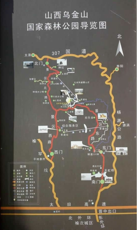 烏金山位于山西省晉中市榆次區(qū)境內(nèi),自古就是避暑勝地。北部與太原市相連,地勢北高南低,群山疊嶂,奇峰毓秀,海拔1200--1489米,有天然森林三萬畝,松柏密集,植被隆厚,白皮松婷婷玉立,側(cè)柏風(fēng)姿卓然,油松蒼勁挺拔,冠蓋奇特?偯娣e5.5萬畝,森林面積3.1萬畝,森林覆蓋率達(dá)80%以上。境內(nèi)有佛教建筑水晶院、正壽寺、華嚴(yán)寺、和合寺、大佛臺(tái)、西晉王廟遺址,又有道教建筑太清宮、呂洞賓詞碑、玉皇閣、龍王廟、五爺廟、九峰塔以及孔祥熙避暑別墅等景點(diǎn)。