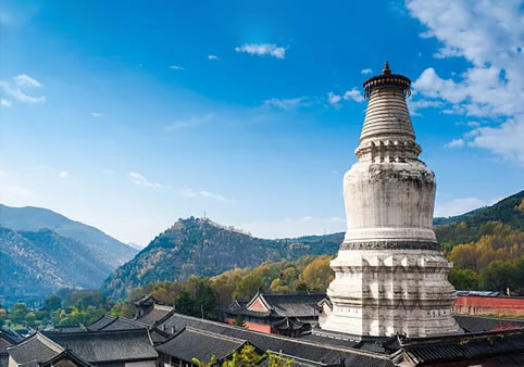 《名山志》載:“五臺(tái)山五峰聳立,高出云表,山頂無林木,有如壘土之臺(tái),故曰五臺(tái)!蔽迮_(tái)山是中國青廟黃廟共處的佛教道場,有宗教活動(dòng)場所86處,其中多敕建寺院,多朝皇帝前來參拜。著名的有:顯通寺、塔院寺、菩薩頂、南山寺、黛螺頂、金閣寺、萬佛閣、碧山寺等。