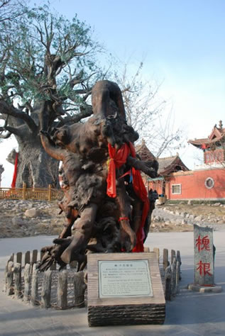 據(jù)考古人員鑒定,此根大約生長在宋元時(shí)期,距今約1000年左右,遠(yuǎn)在明初移民之前;备叨6.2米,其中外露部分4.2米;备P枝錯(cuò)節(jié),形象奇特,能讓人產(chǎn)生豐富的聯(lián)想,是一棵罕見的大型古槐真根。