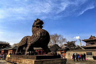 城隍廟是國(guó)務(wù)院重點(diǎn)文物保護(hù)單位,也是國(guó)內(nèi)保存最完整的城隍廟之一。占地面積6000平方米,始建于元至正二十二年(公元1362年),廟內(nèi)主殿建筑結(jié)構(gòu)精巧細(xì)致。主殿前 有玄鑒一座,高達(dá)25米,頗為壯觀,1999年世界歷史文化遺址保護(hù)基金會(huì)公布為全球最精美的古建筑之一,城隍廟是古代宗教文化中普遍崇祀的重要神之一,是護(hù)城佑民、主掌茗 籍之神。是古代“人神共治”思想的明確反映 。城隍廟前,有兩尊貔貅(pi xiu)威武地橫在門前的廣場(chǎng)上。這種據(jù)說(shuō)只有嘴沒(méi)有屁眼的獸喻意“只進(jìn)不出”,是發(fā)財(cái)?shù)娜皤F。在陽(yáng)光下.鑄鐵的貔貅昂首挺胸,威風(fēng)凜凜,像一對(duì)忠誠(chéng)的衛(wèi)士,日夜鎮(zhèn)守在古城。
