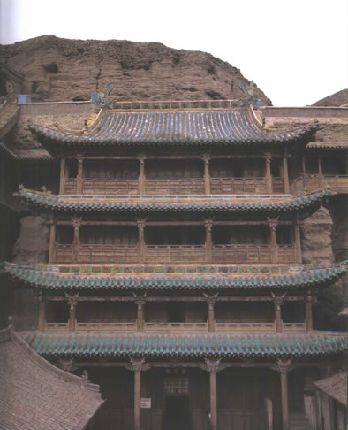 遼金:遼興宗、道宗時(shí)期,遼皇室曾對(duì)武州山石窟寺進(jìn)行過(guò)延續(xù)十年之久的大規(guī)模修整。修建了石窟前接木構(gòu)窟檐的通樂(lè)、靈巖、鯨崇、鎮(zhèn)國(guó)、護(hù)國(guó)、天宮、崇福、童子、華嚴(yán)、兜率十座大寺,并對(duì)一千余尊佛像進(jìn)行了整修。遼保大二年(1122年)金兵攻占大同,"寺遭焚劫,靈巖棟宇,掃地?zé)o遺"(《大金西京重修華嚴(yán)寺碑》)。金皇統(tǒng)三年至六年(1143-1146年),住持法師稟慧重修"靈巖大閣"(今第三窟外的閣樓),"自是,山門(mén)氣象,翕然復(fù)完矣。"(《金碑》)。