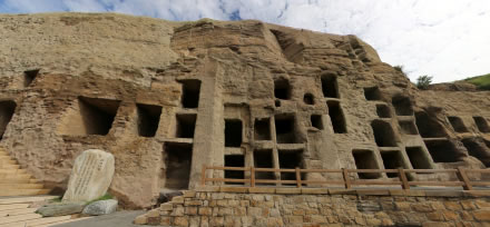 云岡石窟位于中國(guó)山西省大同市城西約16公里的武州(周)山南麓、武州川的北岸。石窟依山開(kāi)鑿,規(guī)模恢弘、氣勢(shì)雄渾,東西綿延約1公里,窟區(qū)自東而西依自然山勢(shì)分為東、中、西三區(qū)。現(xiàn)存主要洞窟45個(gè),附屬洞窟209個(gè),雕刻面積達(dá)18000余平方米。造像最高為17米,最小為2厘米,佛龕約計(jì)1100多個(gè),大小造像59000余尊。云岡石窟距今已有1500年的歷史,是佛教藝術(shù)東傳中國(guó)后,第一次由一個(gè)民族用一個(gè)朝代雕作而成皇家風(fēng)范的佛教藝術(shù)寶庫(kù),是公元5世紀(jì)中西文化融合的歷史豐碑。1961年3月被國(guó)務(wù)院公布為首批全國(guó)重點(diǎn)文物保護(hù)單位;2001年12月被聯(lián)合國(guó)教科文組織批準(zhǔn)列入“世界文化遺產(chǎn)”名錄;2007年5月成為國(guó)家首批5A級(jí)旅游景區(qū)。