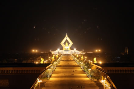 佛光大道長1230米,寬108米,1代表這里供奉著世界上唯一釋迦摩尼指骨舍利,2代表新舊兩座寶塔,3就是代表佛法僧三寶的設(shè)計規(guī)劃,而0就是萬物一切所有的眾生。而108呢,比如說法師手持的念珠就是108顆,每撥去一顆佛珠就代表看破放下一種煩惱。