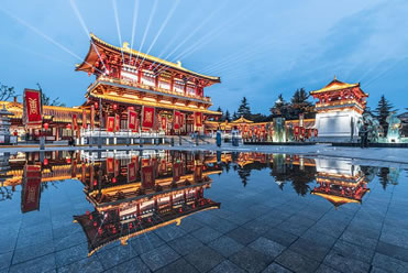 大唐芙蓉園,位于陜西省西安市雁塔區(qū)大雁塔東南側(cè),占地面積1000畝,其中水域面積300畝。大唐芙蓉園是在原唐代芙蓉園遺址以北,仿照唐代皇家園林式樣重新建造的,是中國(guó)第一個(gè)全方位展示盛唐風(fēng)貌的大型皇家園林式文化主題公園。