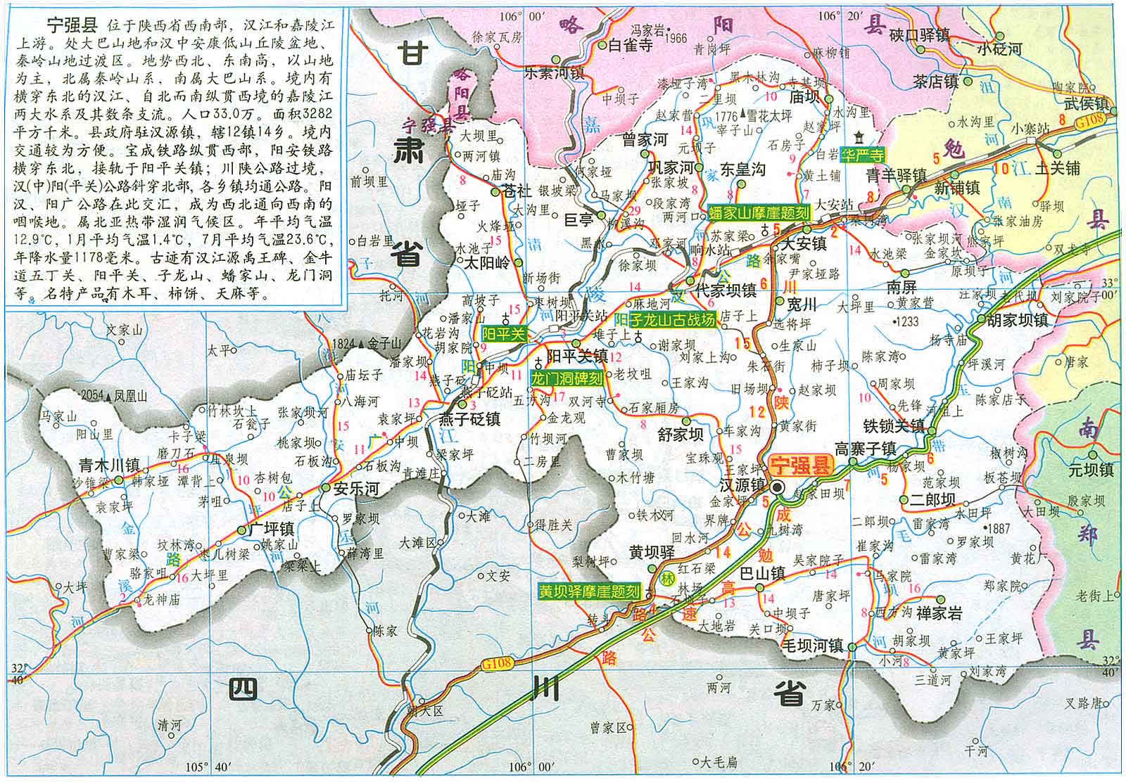 寧強(qiáng)縣轄12個(gè)鎮(zhèn)、14個(gè)鄉(xiāng):