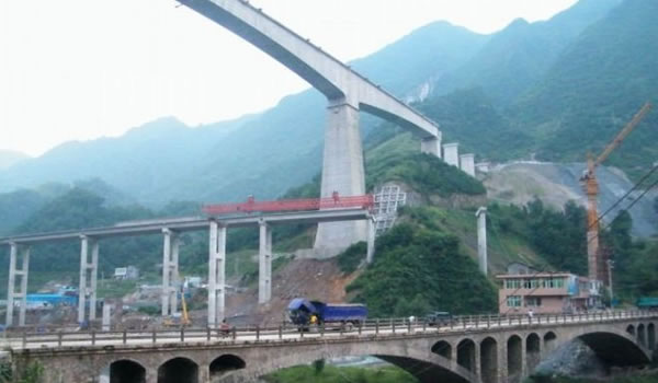 亞洲第一跨 亞洲第一跨位于鎮(zhèn)巴縣巴山鄉(xiāng)兩岔河中游襄渝鐵路Ⅱ線牛角坪雙線特大橋。大橋2006年3月開工,至今年8月12日,該橋主體工程按原計劃順利合龍。主橋墩埋深50米,主墩墩高98米,全長577.4米,鐵路雙線T型預應力混凝土連續(xù)剛構主跨為192米,位居亞洲第一,在世界上僅次于主跨250米的葡萄牙費魯瓦利阿大橋。 據了解,該橋計劃2009年3月建成交付使用。屆時,高達111.3米的雄偉大橋,將成為襄渝鐵路線上又一道獨特的風景。