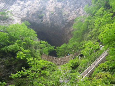 蟒洞是一條又細(xì)又窄的峽谷縫隙里的一個洞穴。站在洞中向上望,有一條狹長的縫隙看到天空,就像是雷電劈開的痕跡。洞中有一形似巨蟒的鐘乳石側(cè)臥在洞中,故名蟒洞。