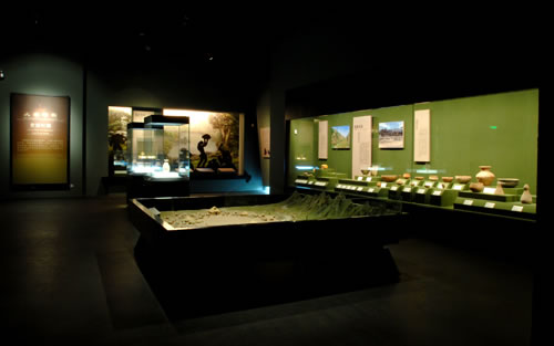 陜西歷史博物館基本陳列《陜西古代文明》,于2008年3月正式開(kāi)放,以歷史進(jìn)程為線(xiàn)索,選取各時(shí)代的典型文物進(jìn)行組合陳列,來(lái)揭示陜西地區(qū)古代社會(huì)文明發(fā)展?fàn)顩r。該陳列展廳面積4600平方米,共三個(gè)展室,分為七個(gè)部分(史前、周、秦、漢、魏晉南北朝、隋唐、宋元明清),精選的2000余件珍貴文物包括:反映古代先民生活情景和藝術(shù)追求的豐富多姿的彩陶器皿,反映周人興起與鼎盛的青銅器,反映秦掃六合統(tǒng)一天下氣勢(shì)的青銅劍、經(jīng)機(jī)、兵馬等,以及顯示秦漢奮發(fā)崛起精神的鋼建筑構(gòu)件、大型瓦當(dāng),還有反映封建盛世繁榮景象的精美的唐代金銀器和唐三彩等,并配以遺址模型、圖表、照片等輔助展品。系統(tǒng)地展現(xiàn)了自115萬(wàn)年前至1840年陜西地區(qū)的古代歷史。由于中國(guó)古代社會(huì)周、秦、漢、隋、唐幾個(gè)盛期都是在陜西地區(qū)建都,所以該陳列以這幾個(gè)時(shí)期為重點(diǎn),既突出反映了陜西地區(qū)古代燦爛的文化,也反映了這幾個(gè)時(shí)期中國(guó)社會(huì)經(jīng)濟(jì)文化發(fā)展的最高水平。