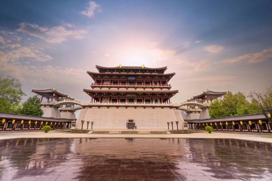 大唐芙蓉園,位于陜西省西安市雁塔區(qū)大雁塔東南側(cè),占地面積1000畝,其中水域面積300畝。大唐芙蓉園是在原唐代芙蓉園遺址以北,仿照唐代皇家園林式樣重新建造的,是中國第一個全方位展示盛唐風(fēng)貌的大型皇家園林式文化主題公園。