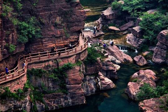 紅石峽位于陜西省榆林市城北3公里處,距離榆林市區(qū)僅5公里。紅石峽谷長(zhǎng)約350米,峽谷東崖高約11.5米,西崖高13米,東西對(duì)峙,峭拔雄偉。峽內(nèi)榆溪河水穿峽而過(guò)直達(dá)城西。古代駐守榆林的文人墨客甚至武將都喜好到紅石峽題刻以抒發(fā)邊塞豪情壯志,所以紅石峽又是長(zhǎng)城書法藝術(shù)的一大寶庫(kù)。從題字的內(nèi)容,可以看出榆林古時(shí)“九邊重鎮(zhèn)”的地位。此外,還可以欣賞到宋元時(shí)期的石窟藝術(shù)。趕上晴天,就可以一睹“紅山夕照”的風(fēng)采:夕陽(yáng)之下如同晚霞一般絢麗的紅石峽風(fēng)光。是著名的“榆林八景”之一。