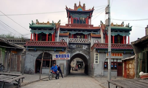 高家堡古城:唐屬豐州地,舊稱飛鴉川、彌川。城池始建于明正統(tǒng)四年(1439),原隸屬佳州,清末劃歸神木。該城位于神木縣城西南海50公里的禿尾河東岸,西北距明長城約5公里,原為夯筑土城,萬歷三十六年(1608)用磚包砌,清乾隆十五年(1750)、三十三年(1768)兩度重修,后多次修葺。該城平面呈長方形、東南墻均長311米,南北墻均431米,殘高6.5—9.1米,基寬7.52米。城墻上部建有1米高的女墻,間有垛口、嘹望洞。北城頭修有三官樓,東南角建有魁星樓,F(xiàn)除魁性樓、女墻、垛口、嘹望洞被壞外,其余的均保存完好。另東、南、西墻各辟一卷門,并筑有甕城,現(xiàn)城門的敵樓、嘹望臺和南門已破壞。城內(nèi)原有的中興樓(1988年被縣人民政府公布為重點文物保護單位)、城隍廟、財神廟、五道廟、祖師廟、西門寺、貞節(jié)牌坊等古建筑,現(xiàn)僅存中興樓和財神廟,城內(nèi)街道以中興樓為軸心,向東西輻射為東西街,向陽北南北輻射為南街和北巷。明、清到民國初,南街最為繁華,至今大部分鋪面保存完好,東、西、南街各通有巷道。居民建筑群為典型的北方構(gòu)筑風格。既有四合院,如北巷的李家大院;又有前庭大院,如東街的盧家大院、西街的韓家大院;還有樓院,如十字巷的李家樓院,同心巷的劉家樓院等。高家堡古城是神木縣乃至整個陜北較為完整的一座城堡,且有獨具特色的保護價值,神木縣人民政府已擬定將該城列為重點文物保護單位。