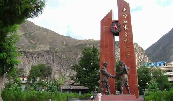 小金縣在中國革命史上具有光輝的一頁。1935年,中國工農(nóng)紅軍一方面軍在毛澤東、朱德、周恩來等老一輩無產(chǎn)階級革命家的帶領(lǐng)下,餐風(fēng)露宿,歷盡艱辛,翻越了長征途中的第一座大雪山—夾金山,與紅四方面軍在該縣達維鄉(xiāng)勝利會師;在美興鎮(zhèn)天主教堂召開了團以上的干部參加的“同樂會”;在兩河口(今兩河鄉(xiāng))召開了具有重大歷史意義的中共中央政治局擴大會議。勤勞勇敢的小金人民節(jié)衣縮食支援紅軍,一千多名優(yōu)秀兒女參加了紅軍,為長征和中國革命勝利作出了積極貢獻。今年5月,由國務(wù)院核定批準,國家文化部公布了全國第六批重點文物保護單位和第一批非物質(zhì)文化遺產(chǎn)目錄。小金縣紅一、四方面軍會師遺址(達維會師橋、紅軍“懋功同樂會”遺址——天主教堂)和“兩河口政治局會議”會址榜上有名。
