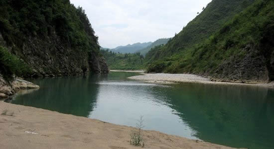 沙 固軍鄉(xiāng)中河上游的沙清河,位于小河口(木臘溪出口)上方。此段河道兩岸兩山所夾形成陡峭峽谷。這里河水清澈,石壁怪狀,風(fēng)景尤佳。雖交通不便,尚待開發(fā),但早已取吸了大批附近城鎮(zhèn)的游客前來旅游觀光。