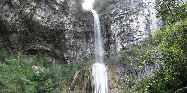 滴 滴水巖,位于固軍鄉(xiāng)火石梁村東南。此地有一小溪為兩山所夾,越往上游山勢越高,坡度越陡。最終于小溪盡頭處兩山合為絕壁,其頂部成“V”字相交。相交處有一股清泉摔落至下方一堅(jiān)立雞蛋狀的巨石,發(fā)出巨大的聲響。泉水再分為幾綹沿平滑如鏡的石壁滑落至下方深潭!遠(yuǎn)遠(yuǎn)看去,爬滿暗綠青苔的石壁上像是掛著無數(shù)條白色的絲帶和珠簾!雖景致與沙清河各有千秋,甚至略勝一籌。但因交通較為閉塞,所以知者不多,但來此觀光過的游客無不伸出大拇指一個(gè)勁兒地叫好!
