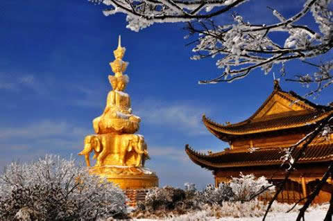 金頂是峨眉山的象征,金佛是峨眉山的標志。金頂是峨眉山景點和寺廟的匯集,48米高的四面十方普賢金像矗立在金頂。