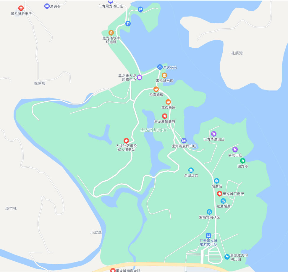 1986年,成立黑龍?zhí)讹L(fēng)景名勝區(qū),后改名為黑龍灘風(fēng)景區(qū)。黑龍灘風(fēng)景區(qū)擁有7峽7壩85座群島,湖岸線長310公里,湖水面積23.6平方千米。截至2021年,黑龍灘景區(qū)已建成水庫、濕地公園、旅游度假區(qū)為一體的風(fēng)景名勝區(qū)。