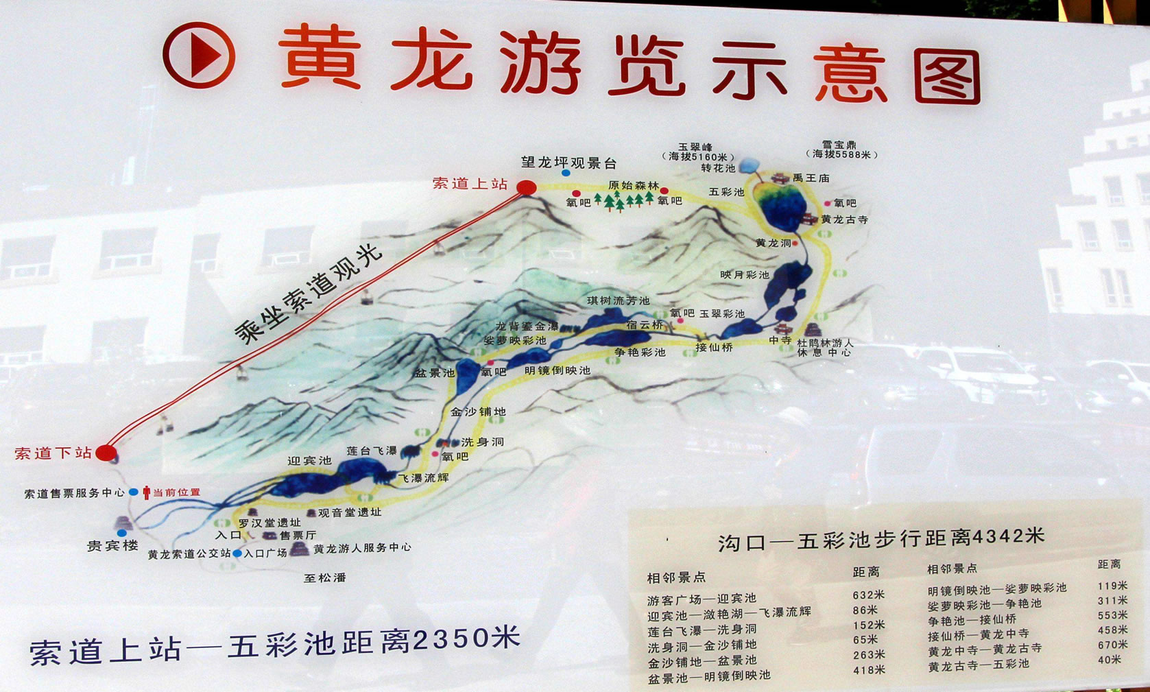 黃龍風(fēng)景名勝區(qū)位于四川省阿壩藏族羌族自治州松潘縣,面積700平方公里,是中國唯一保護(hù)完好的高原濕地。其與九寨溝相距100千米,海拔1700-5588米。