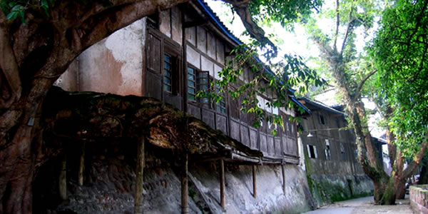 古榕樹下的老街 柳江的老街距曾家大院不過數(shù)十米。穿過狹窄的胡同,一個整潔古樸的小鎮(zhèn)出現(xiàn)了。木門、木窗、青瓦以及瓦上不經(jīng)意長出的幾絲綠色,與鋼筋水泥群碉式的大都市相比,多了幾分詩意。 老街上的住戶很少了。去一個地方,不用多問,就看當(dāng)?shù)厝说难凵癖懵灾蟾拧<{鞋底的婦女,打川牌的漢子,在家休息的學(xué)子,路上自由奔跑的狗,這就是當(dāng)時小鎮(zhèn)的全部。惟一稍顯嘈雜的聲音便是我們的腳步聲和贊美聲。 順著小鎮(zhèn)往東行走,在遮天蔽日的大榕樹的身影下,到了花溪河邊。遠(yuǎn)山含黛,朦朧中竹影搖曳,順著小鎮(zhèn)往東行走,在遮天蔽日的大榕樹的身影下,到了花溪河邊。遠(yuǎn)山含黛,朦朧中竹影搖曳,炊煙裊裊,山、樹、青瓦木屋,一并倒映在清亮的小河之中。小河上有人為筑成的石路,當(dāng)?shù)厝朔Q之為跳蹬,是連接兩岸的通道,石路的鋪設(shè)阻止了水的流動,涓涓細(xì)流在這里駐足停留,平靜得如同鏡子,成了當(dāng)?shù)厝思忆揭孪床说牡胤剑渤闪唆~蝦談情說愛的平靜港灣。美中不足的是跳蹬上布滿了垃圾,讓不少遠(yuǎn)方來客感到一種失落和遺憾。 文物保護(hù)單位 走累了,坐在美人靠上是一種愜意,木質(zhì)的建筑顯得很有親切感,屋檐下那些透空鏤花的物件無一不透出藝術(shù)的靈氣。眺望河對岸的一字排開的柳江古鎮(zhèn),能覺察到當(dāng)年主人的幾許孤傲之氣。 時光流逝,物是人非。無論曾家大院修建得多么有氣魄,裝修得多么豪華,在今天都讓人感到莫名的寂寥。偌大的院落鮮有人跡,有時大門緊閉,只能在外面偷偷打望一番。這座豪宅在解放后曾作為鎮(zhèn)政府的辦公樓,為了保護(hù)古跡,鎮(zhèn)政府又遷了出來,至今樓上樓下仍散落著許多已經(jīng)無用的日歷、辦公桌等,不知是誰還在二樓的屋檐下養(yǎng)了幾只鴿子,它們與雞成了這里的居民。 這個美其名曰的文物保護(hù)單位,到處是灰塵和垃圾,沒有人管理。游客為曾家大院的建筑所折服,然后又在那種殘敗中遺憾而去。保存這樣完好,又極具特色的清代建筑是不多見的,這樣的保護(hù)顯然沒有實(shí)質(zhì)作用,沒準(zhǔn)哪天某位游客不小心留下的煙頭會將它付之一炬,成為永遠(yuǎn)的痛。