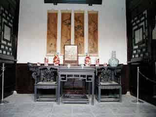 在甬道西側(cè),現(xiàn)辟為"石府復(fù)原陳列"區(qū)。這是當(dāng)年石家會(huì)晤賓客、娛樂(lè)消閑、誦經(jīng)禮佛的場(chǎng)所。裝飾陳設(shè)豪華。有四扇木雕花屏,被稱(chēng)為國(guó)寶,當(dāng)時(shí)工價(jià)1200兩白銀,一朵花、一片葉就合6兩白銀。室內(nèi)設(shè)備講究。有一間客廳地下有暖風(fēng)通道,冬天在墻外地爐里每天燒木炭200斤,向室內(nèi)地下供熱。