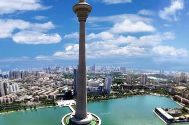 天津廣播電視塔,景名“天塔旋云”,集旅游觀光、餐飲娛樂和廣播電視發(fā)射多功能于一體。天塔總高度415.2米,水榭亭閣式的塔座上,三層跌水倒掛珠簾,水中涌泉撒花揚(yáng)珠,配以剛?cè)嵯酀?jì)、碩長(zhǎng)挺拔的塔身,被游人稱為“空中樓閣”。天塔四面環(huán)水,碧波綠水,雄偉的天塔聳立期間,天塔總高度415.2米,水榭亭閣式的塔座上,三層跌水倒掛珠簾,水中涌泉撒花揚(yáng)珠,配以剛?cè)嵯酀?jì)、碩長(zhǎng)挺拔的塔身,被游人稱為“空中樓閣”的飛碟型塔樓,這一切相得益彰,使天塔宛若一位臨波出浴的仙子。